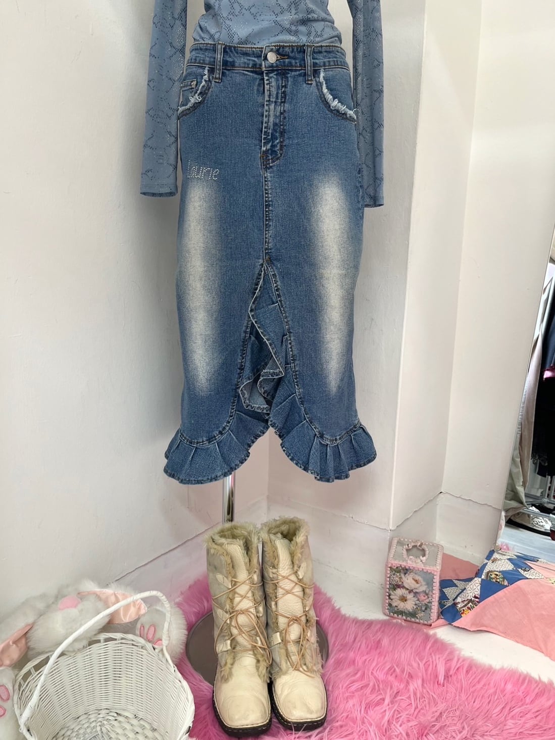 denim long skirt